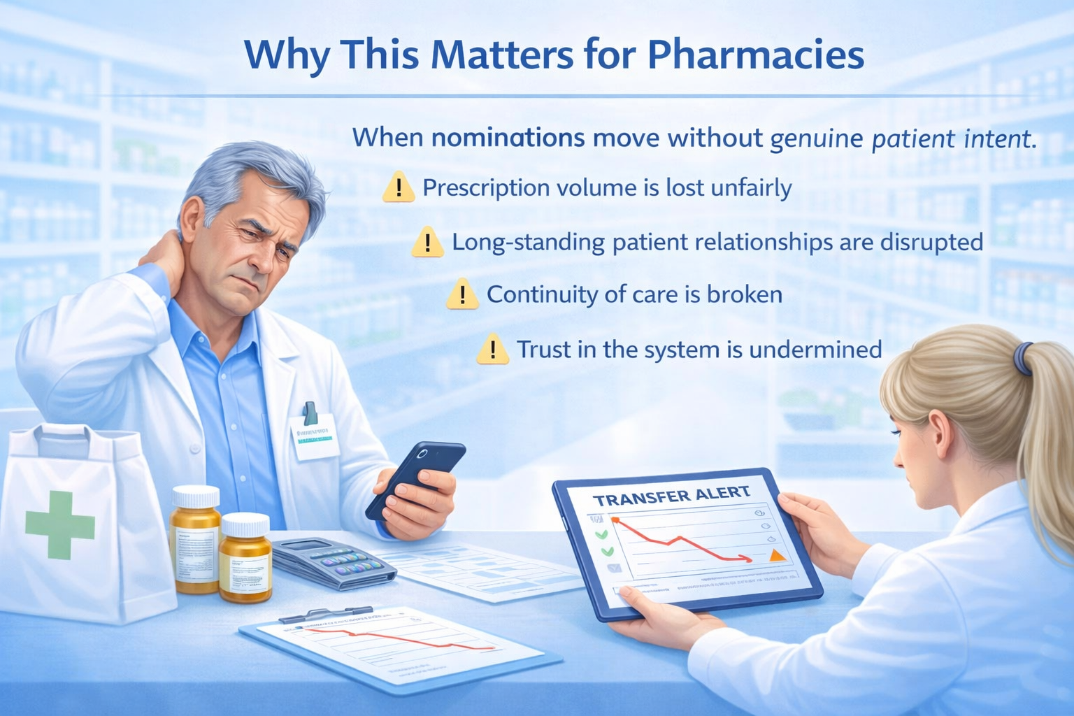 Most Pharmacies assume that when a patient nomination moves It is because the patient made a conscious choice